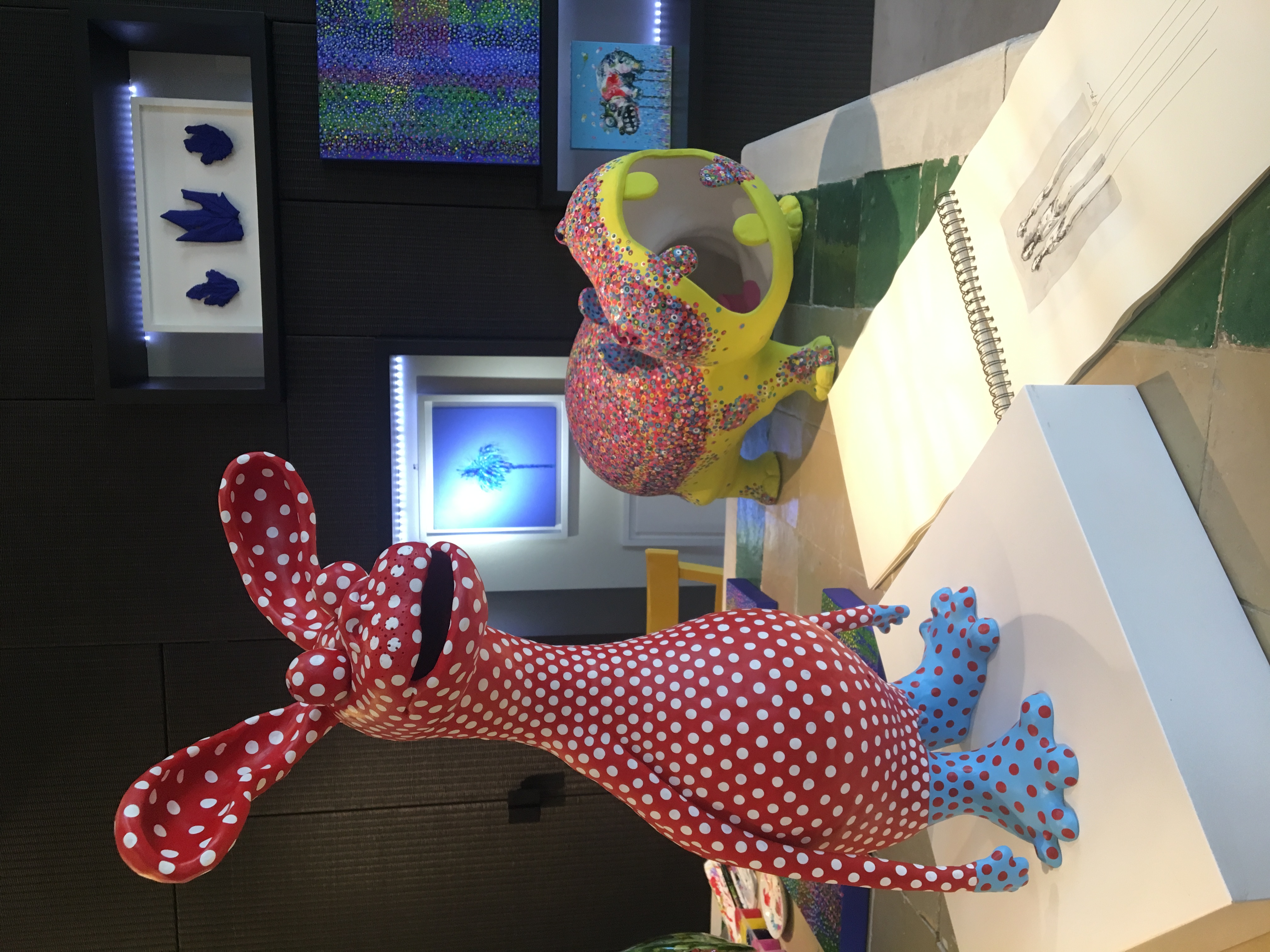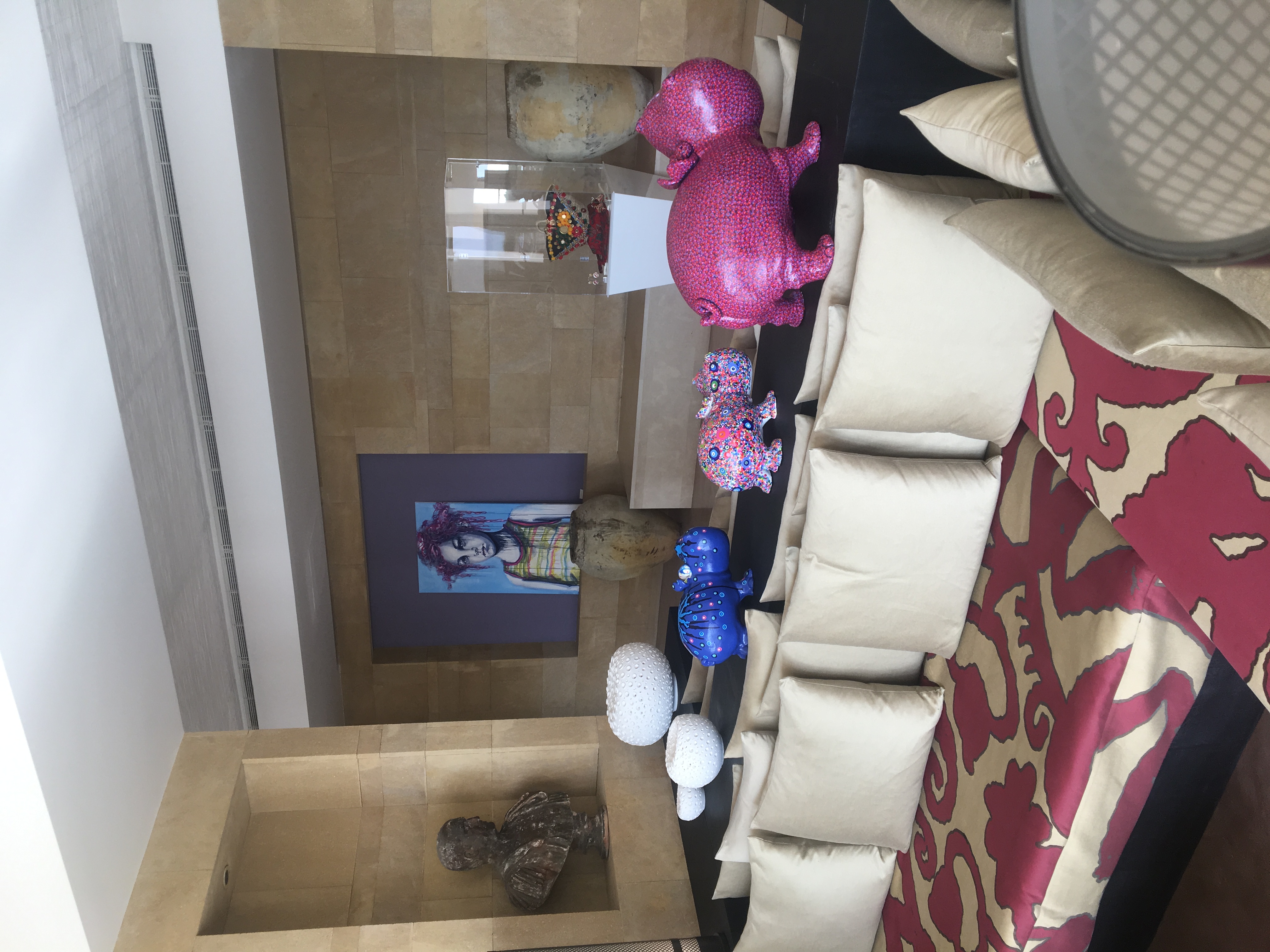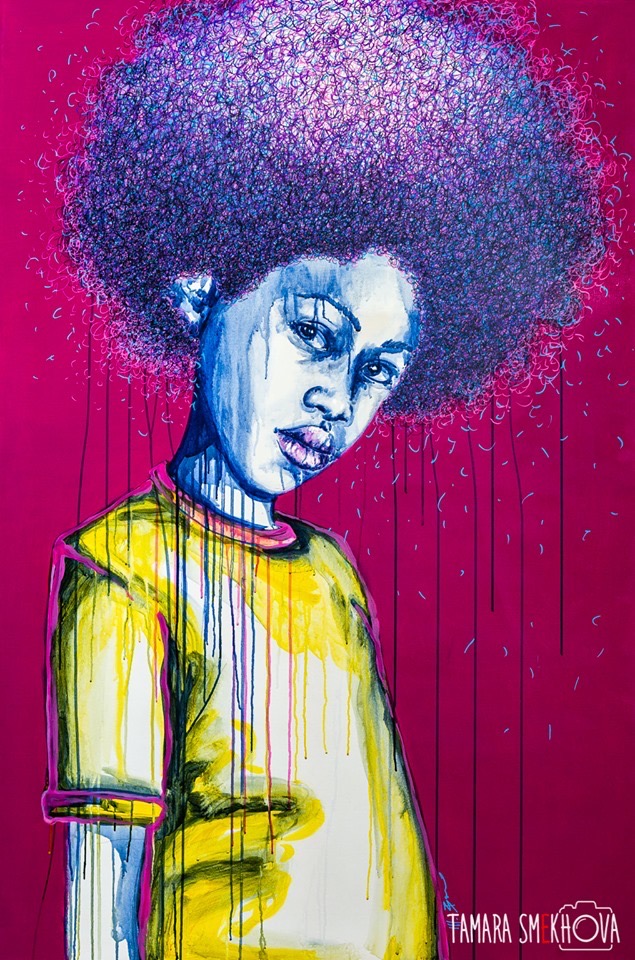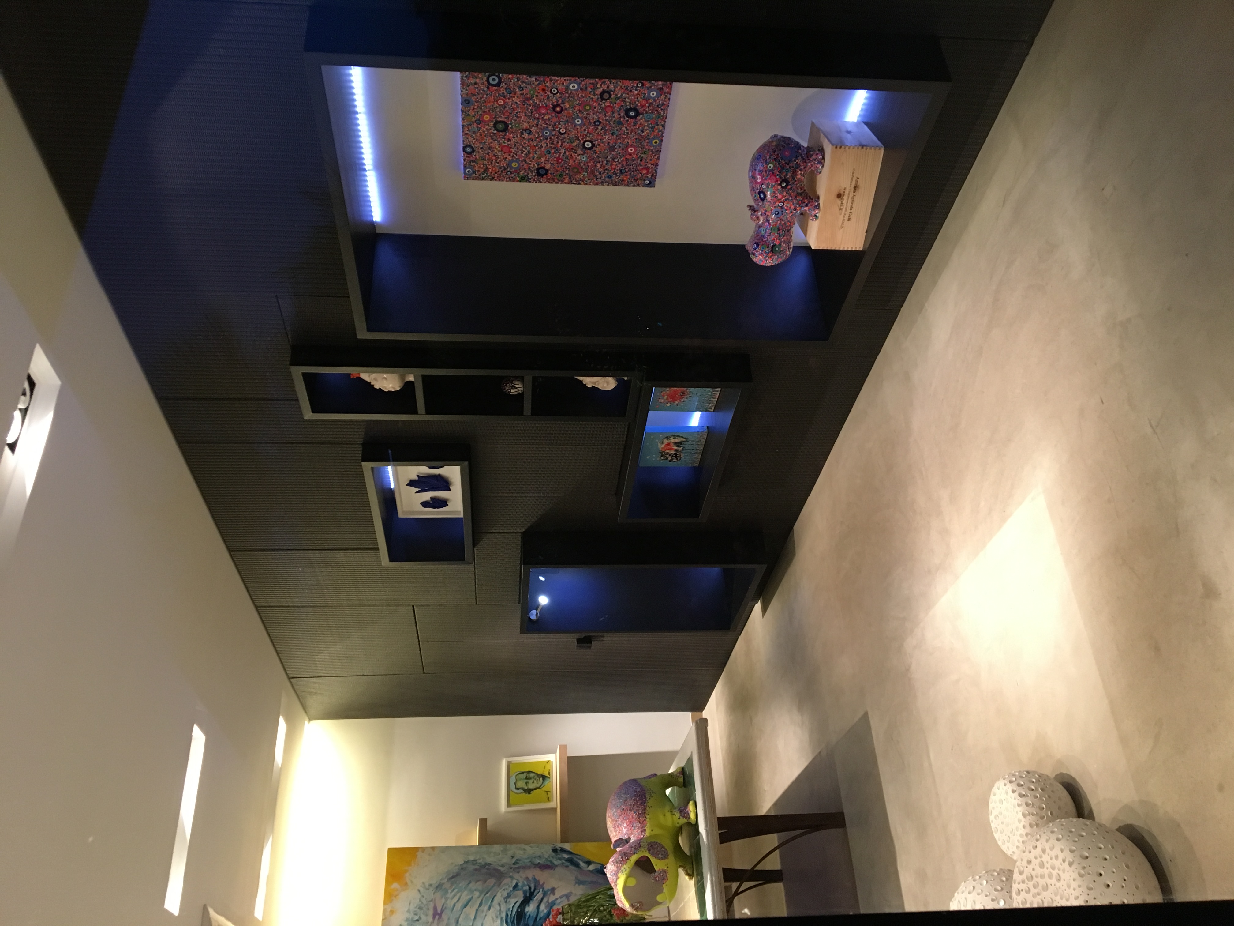 Spesso il colore diventa ricerca di volumi e si amplia la mia sperimentazione: la mano si orienta a cercare ciò che nella mia immaginazione già esiste, si materializza e si traduce nel gioco di macchie, punti, texture che prendono corpo, si aggregano, si allontanano, si fondono e nascono promontori, paesaggi, palme, oggetti, animali fantasiosi e reali che diventano protagonisti del mio racconto grafico.