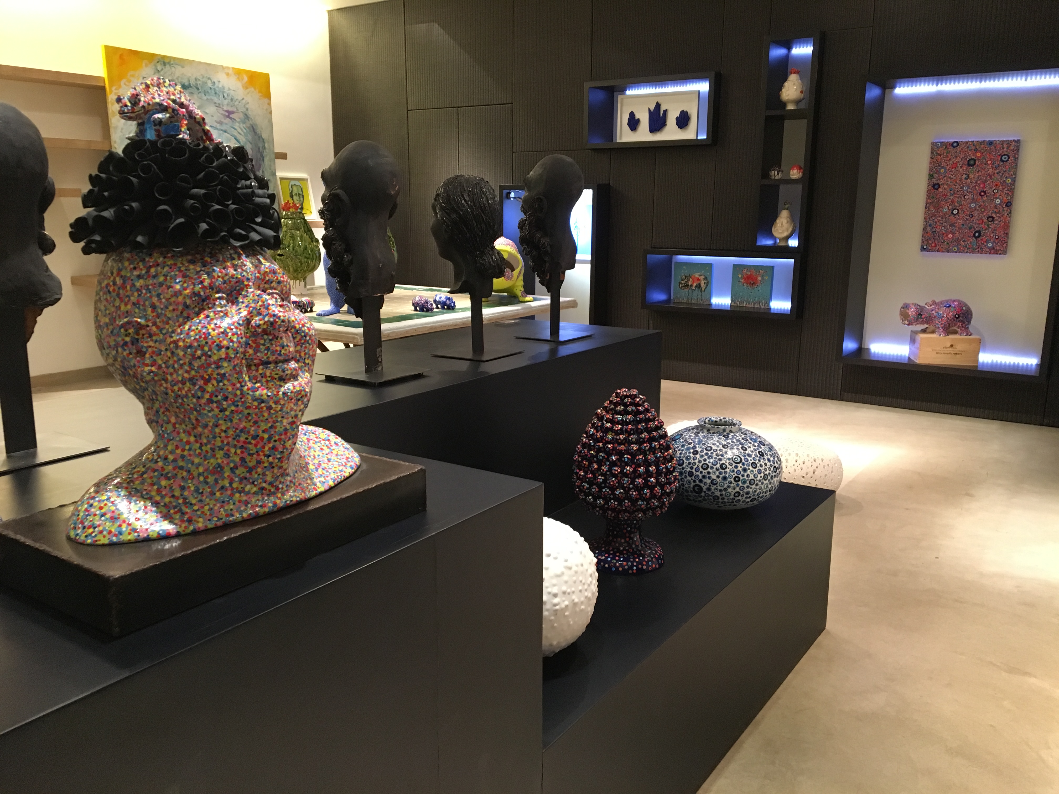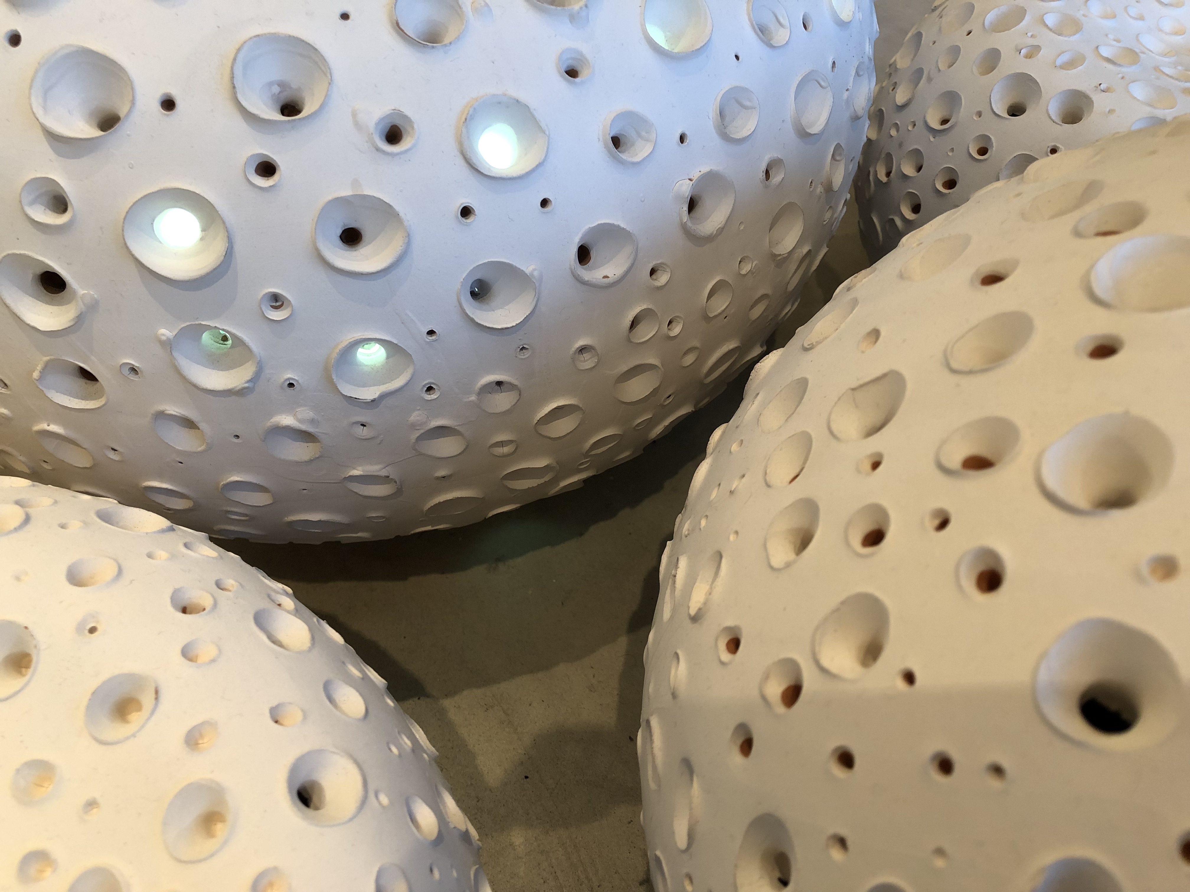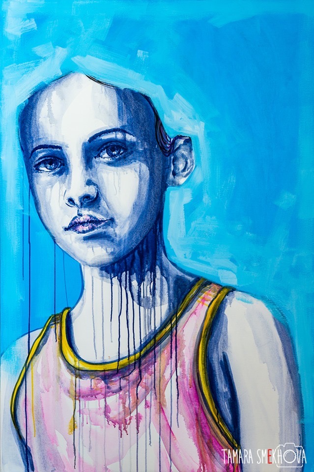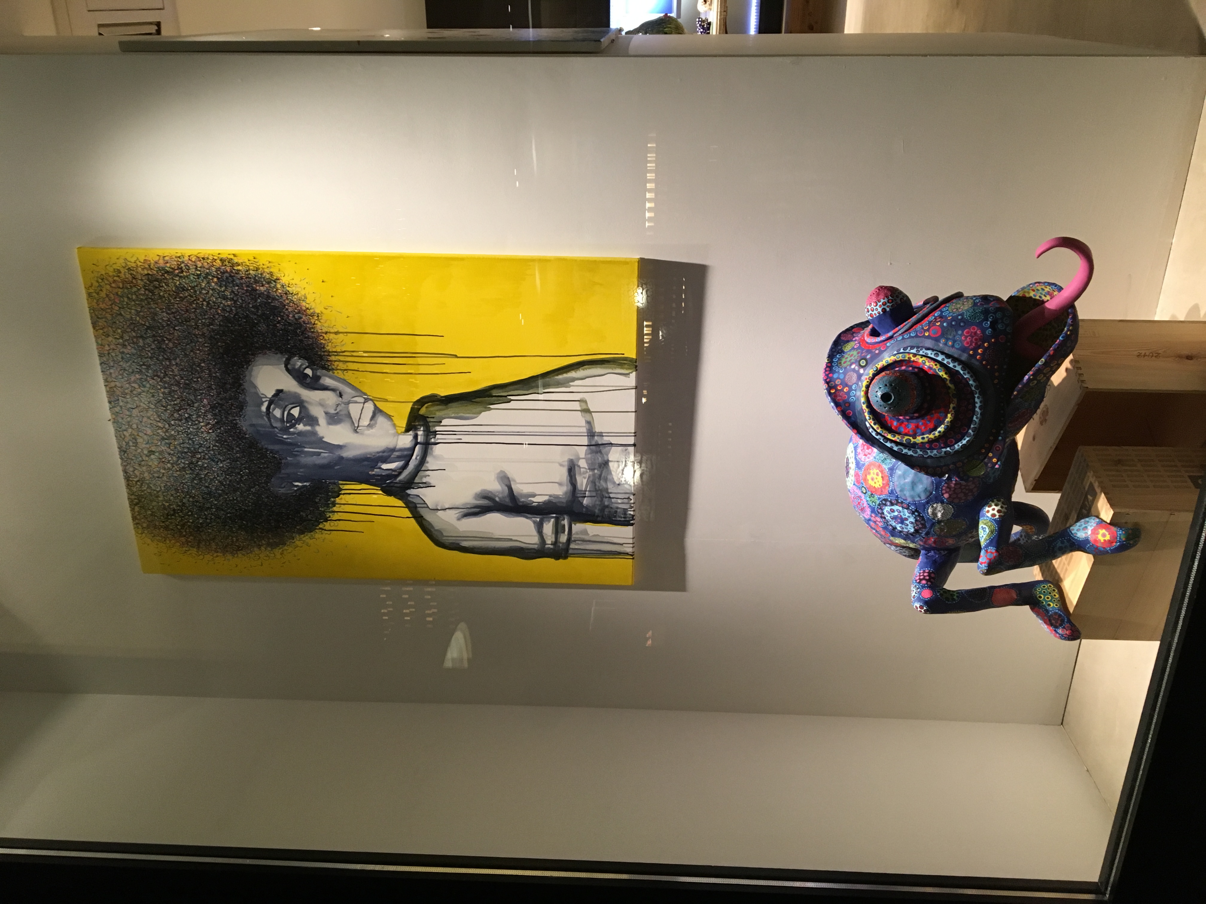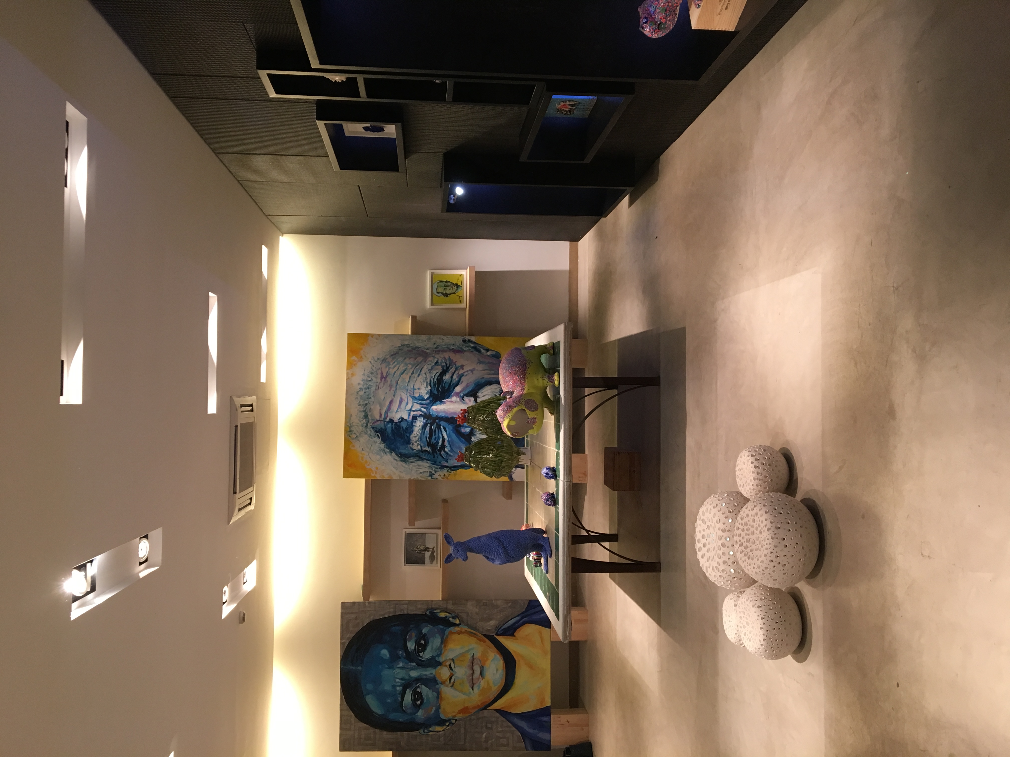 Spesso il colore diventa ricerca di volumi e si amplia la mia sperimentazione: la mano si orienta a cercare ciò che nella mia immaginazione già esiste, si materializza e si traduce nel gioco di macchie, punti, texture che prendono corpo, si aggregano, si allontanano, si fondono e nascono promontori, paesaggi, palme, oggetti, animali fantasiosi e reali che diventano protagonisti del mio racconto grafico.
